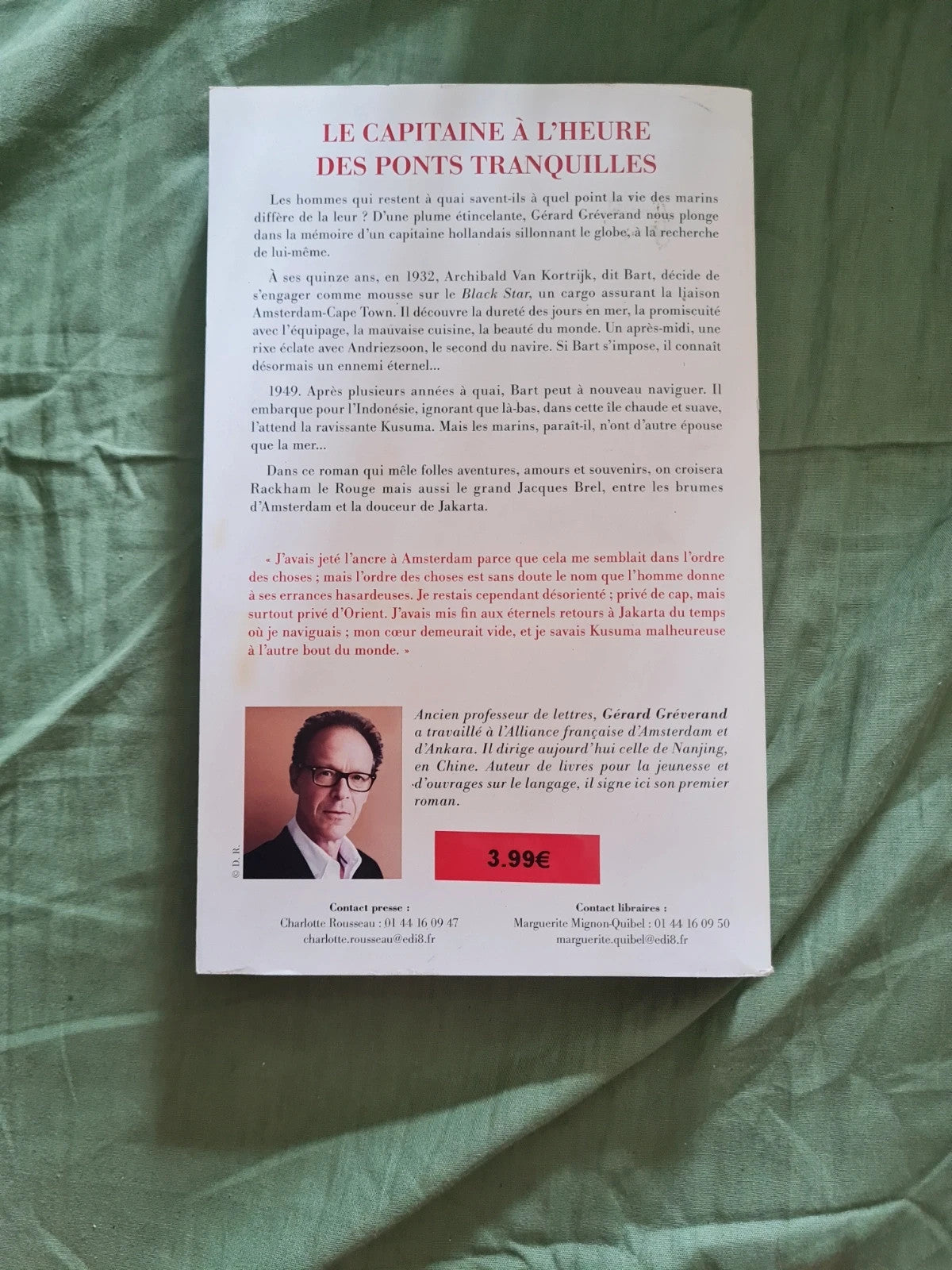 Les hommes qui restent à quai savent-ils à quel point la vie des marins diffère de la leur ? D'une plume étincelante, Gérard Gréverand nous plonge dans la mémoire d'un capitaine hollandais sillonnant le globe, à la recherche de lui-même.