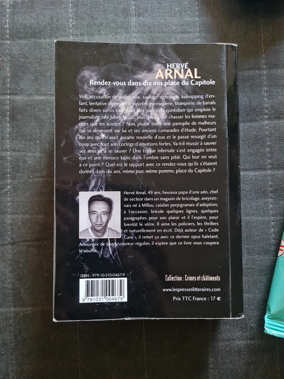 Hervé Arnal, 49 ans, heureux papa d'une ado, chef de secteur dans un magasin de bricolage, aveyronnais né à Millau, catalan perpignanais d'adoption, à l'occasion, bricole quelques lignes, quelques paragraphes pour son plaisir et il l'espère, pour bientôt le vôtre. Il aime les policiers, les thrillers et naturellement en écrit. Déjà auteur de "Code Caro", il remet ça avec ce dernier opus haletant. Amoureux de sport, coureur régulier, il espère que ce livre vous coupera le souffle.